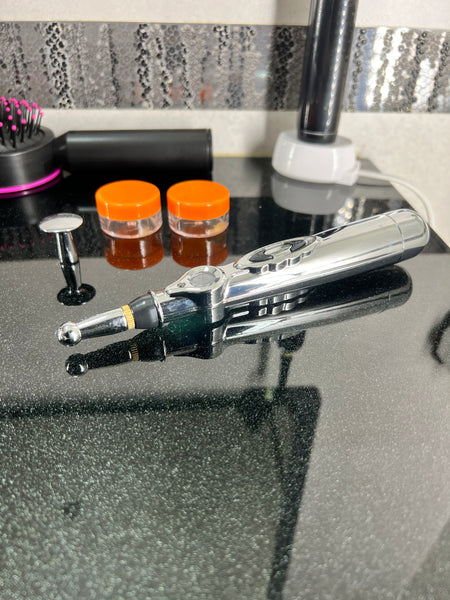 Este lápiz de acupuntura tiene un cabezal intercambiable y puedes regular la velocidad con un dial LED.